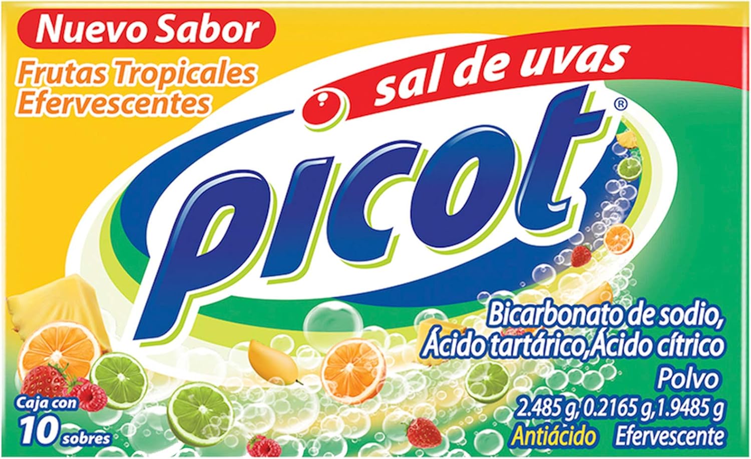 picot sal de uvas antiacido polvo efervescente sabor frutastropicales caja con 10 sobres