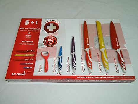 swiss design st 05kp set juego de 5 cuchillos de acero inoxidable y pelador revestimiento ceramico antiadherentes
