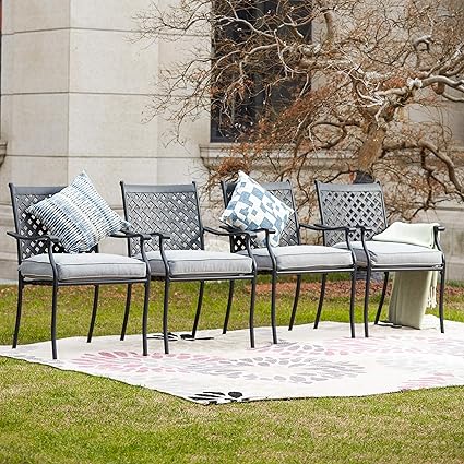 lokatse home juego de 4 sillas para comedor de hierro forjado para exteriores con brazos y cojines de asiento