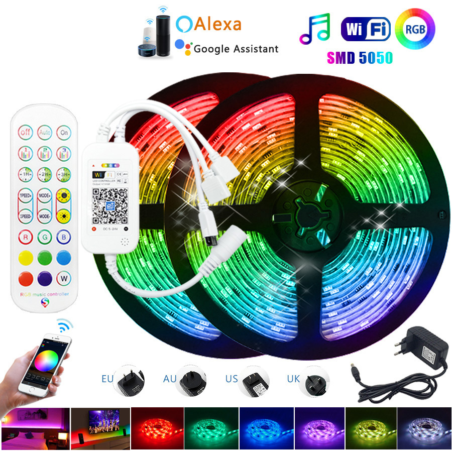 5m 10m rgb led strip lights smart home alexa wifi wireless app controlled light strip rope kit decoration lights working with alexa google