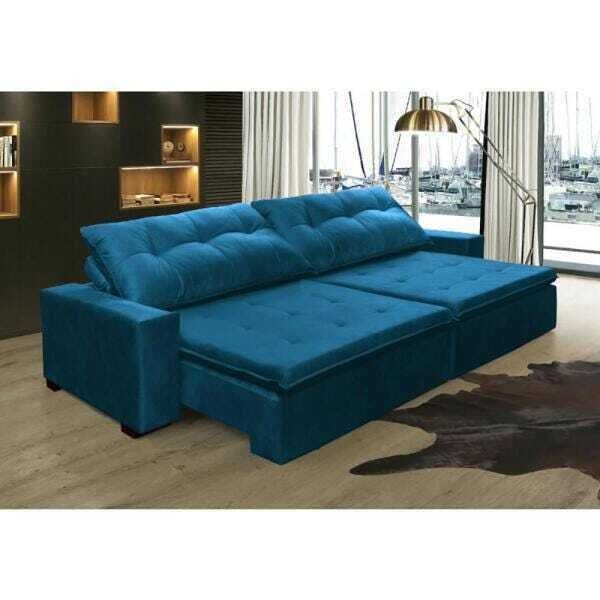 sofa 3 lugares retratil e reclinavel 2 30 mts ravena suede azul sofa mix