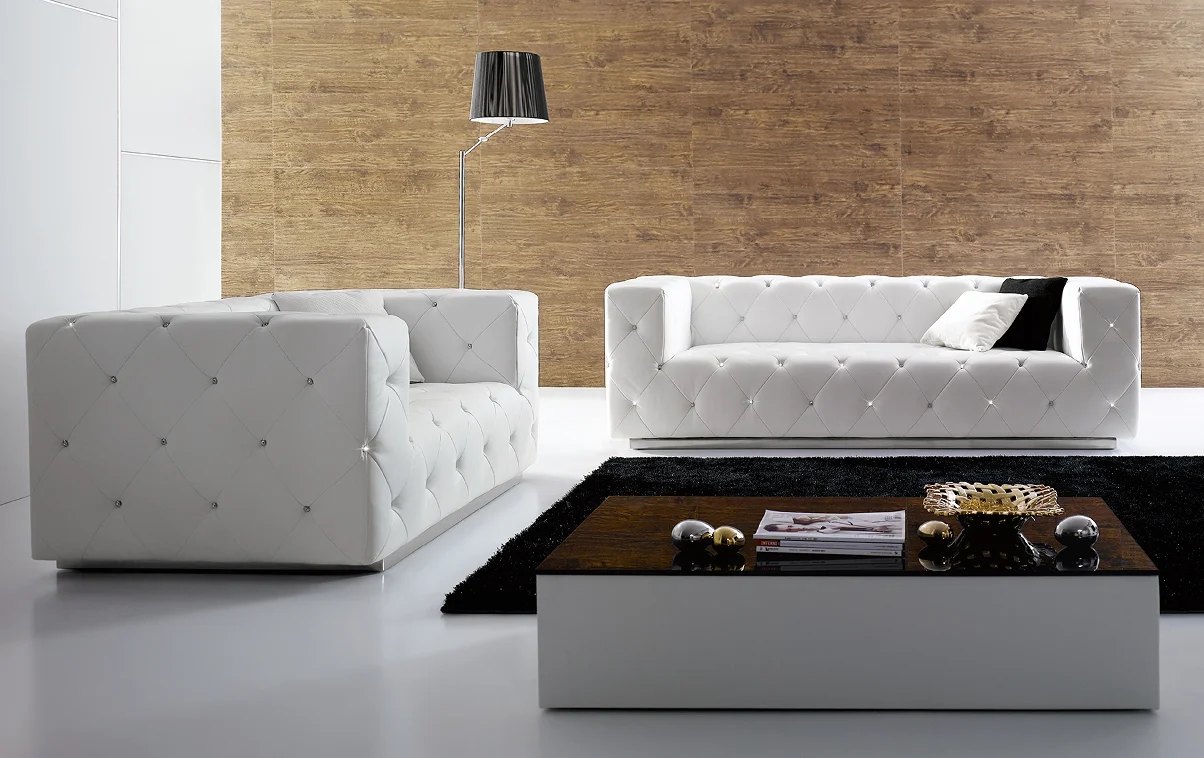 sofa de cuero estilo moderno de color blanco
