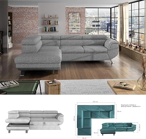 sofa cama esquinero grande con almacenamiento aidian gris paloma