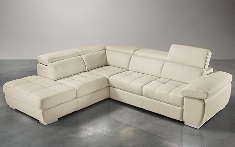 sofa cama esquinero en piel sintetica blanca con reposapies derecho a