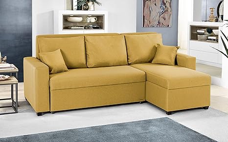 sofa cama esquinero derecho de 5 plazas amarillo mostaza con colchon de 14 cm maisons du monde