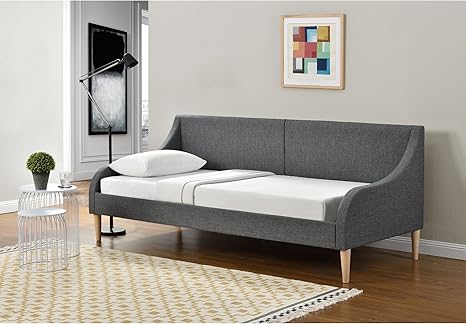 en casa sofa cama cama de dia 200cm x 90cm tela gris con patas de plastico imitacion madera