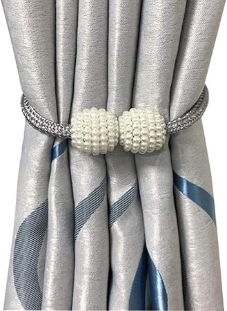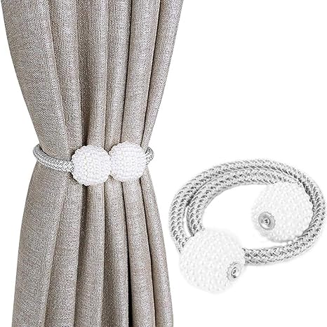 lioobo 2 piezas cortina magnetica de perla ata los sostenedores decorativos de armadura de cortinas tieback gris