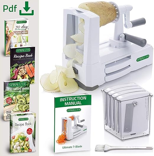 spiralizer 7 blade vegetable slicer strongest and heaviest spiral slicer best veggie pasta spaghetti maker for keto paleo gluten free comes with 4