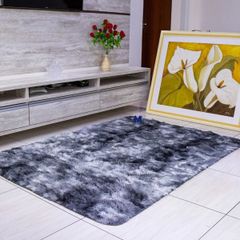 tapete sala quarto peludo felpudo luxo 2 00 x 1 40 pelo macio cor preto mesclado ibicasa enxovais