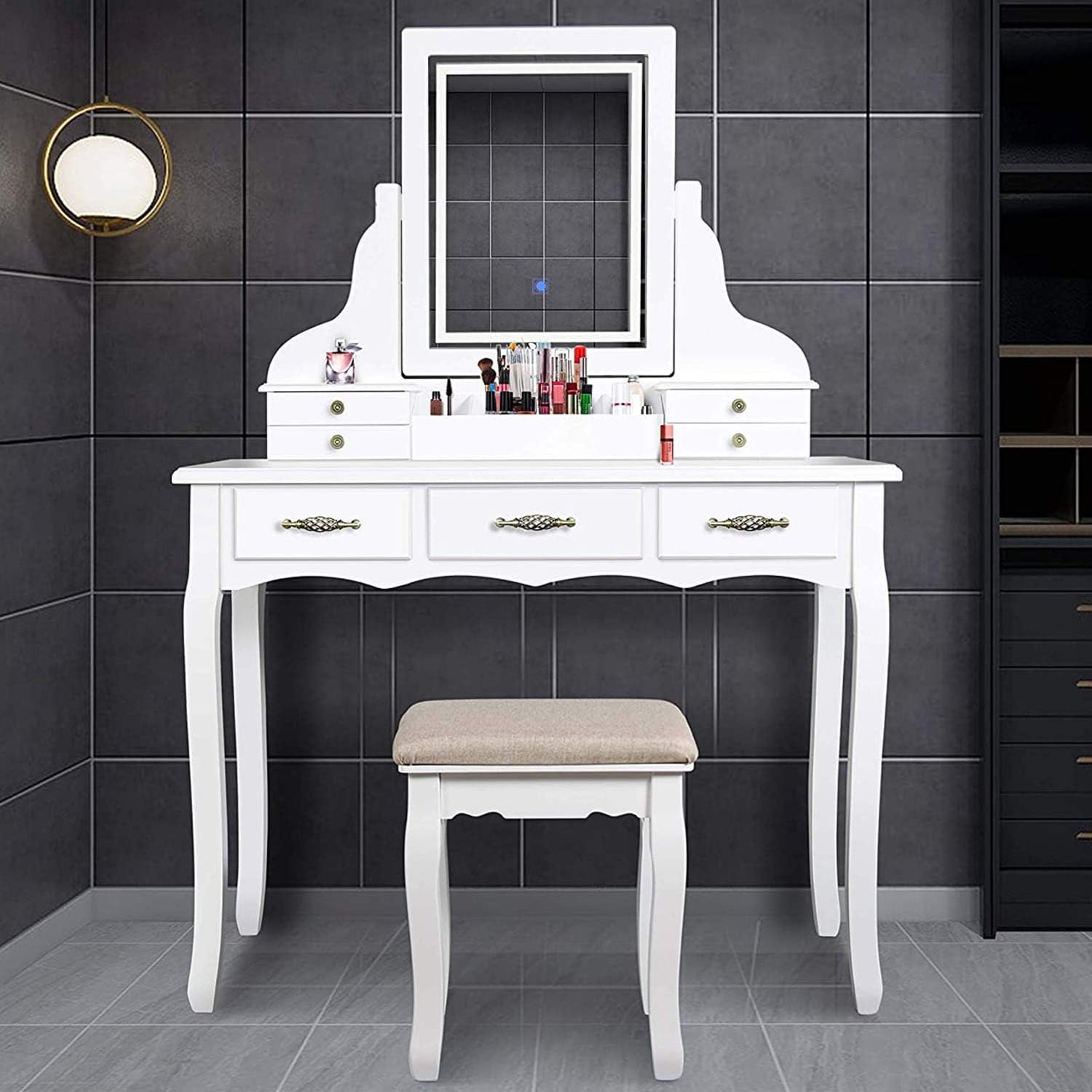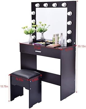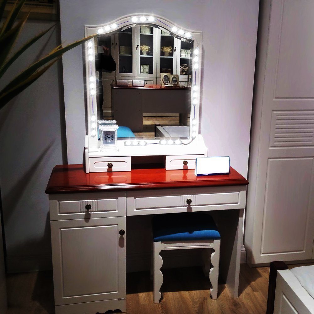 tocador moderno con 10 luces led para mujer mesa de tocador con cajon y espejo para maquillaje bombillas calidas frias envio gratis
