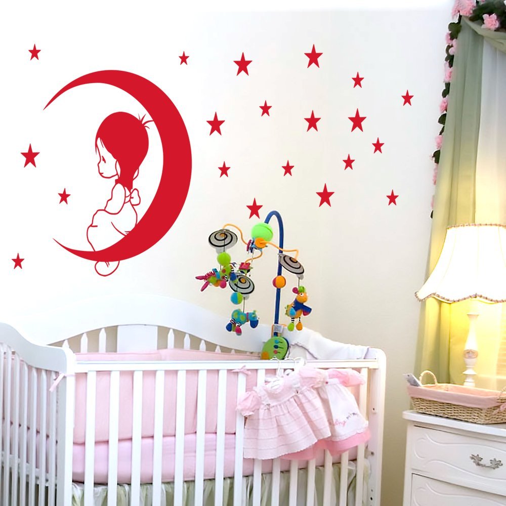 vinilos decorativos infantiles nina sobre luna murales de pared